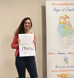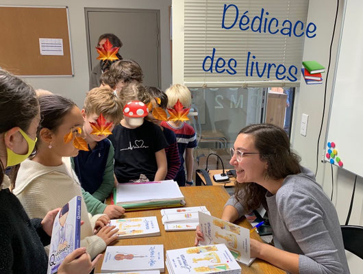 Les élèves découvrent mes illustrations originales, les questions fusent dans tous les sens ! Ils entrent ensuite dans les coulisses de l'écriture et de la fabrication d'un roman, au travers de quatre îlots de travail. Un moment à la fois pédagogique et ludique. Je repars souvent avec des posters remplis de signatures, des dessins magnifiques, et toujours l'envie de rencontrer d'autres enfants pour partager mon travail et ma passion de l'écriture !