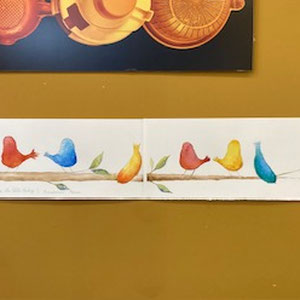 Travail à la plume et au pinceau à la librairie Les Causeuses, de Bollène.